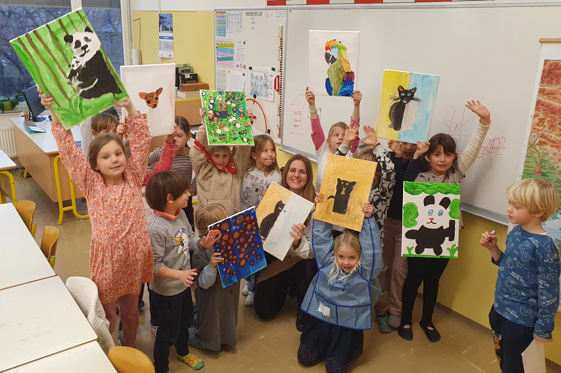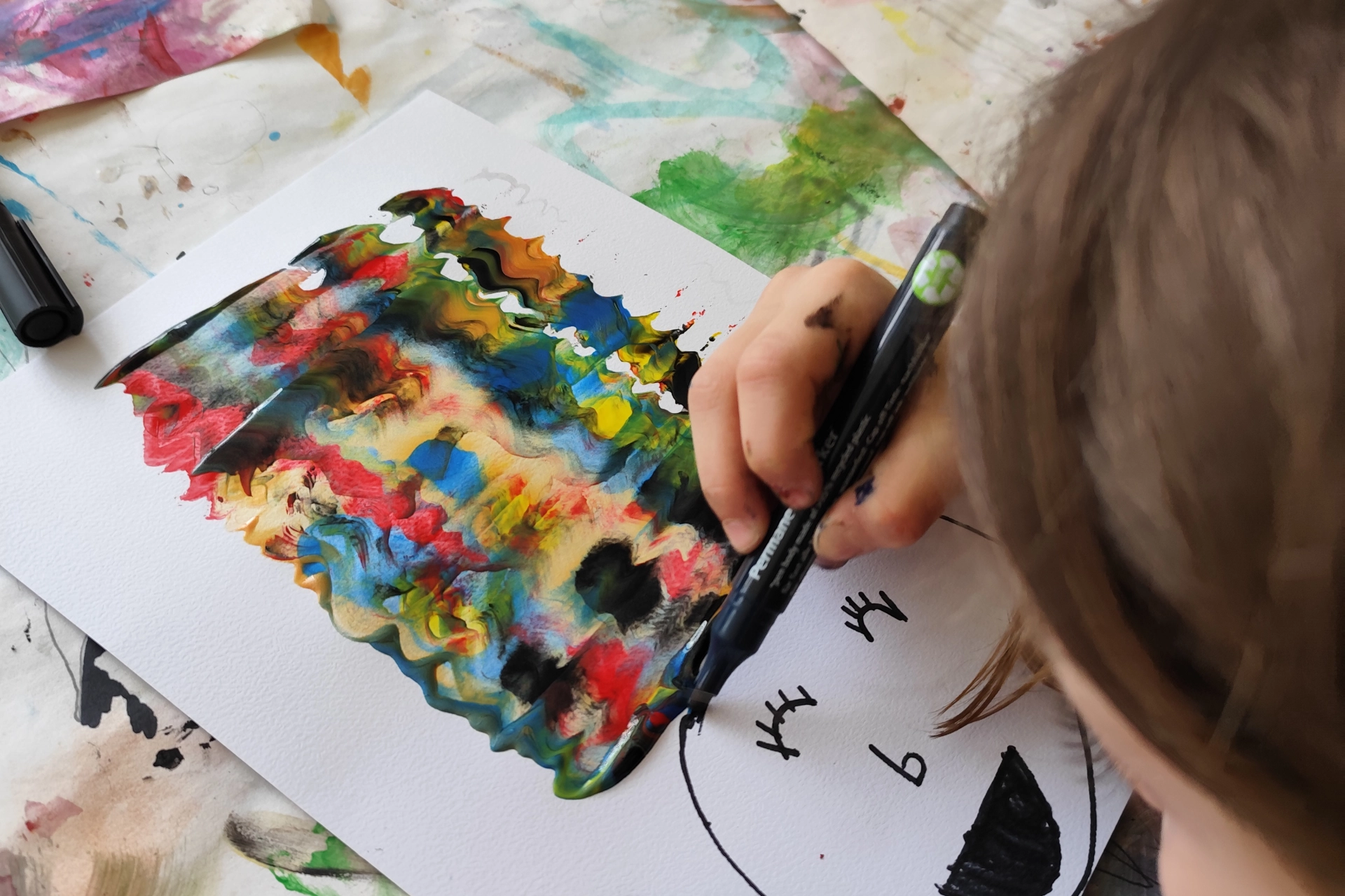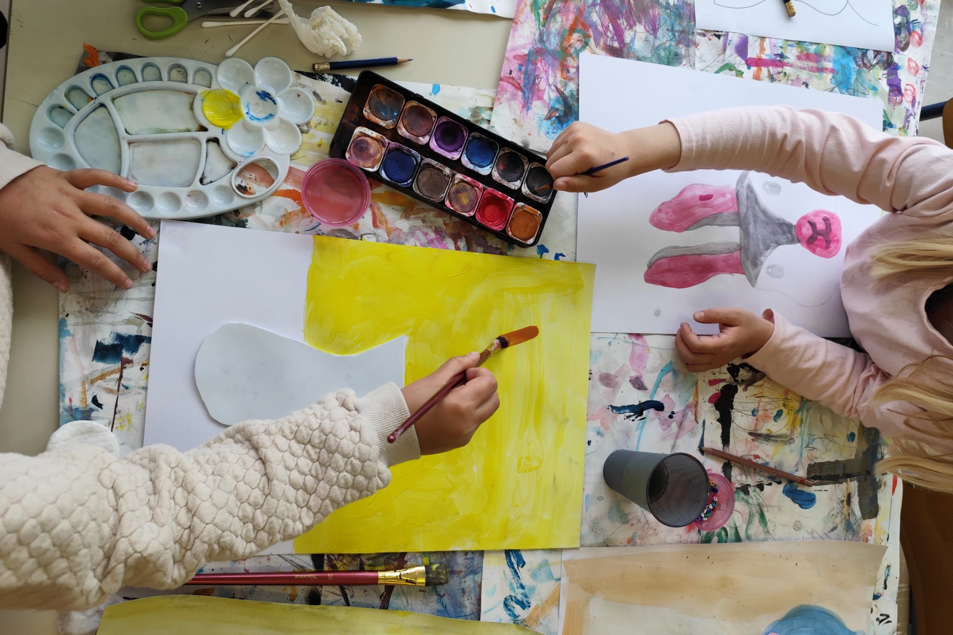 Skupaj raziskujemo različne umetniške tehnike – od slikarstva, arhitekture, oblikovanja v 3D do eksperimentiranja z raznolikimi materiali. Ustvarjanje dopolnjujemo z gibanjem, glasbo in meditacijo, sproščeno se preizkusimo tudi v polivanju barv, risanju z usti, nogami, rokami, zaprtimi očmi …