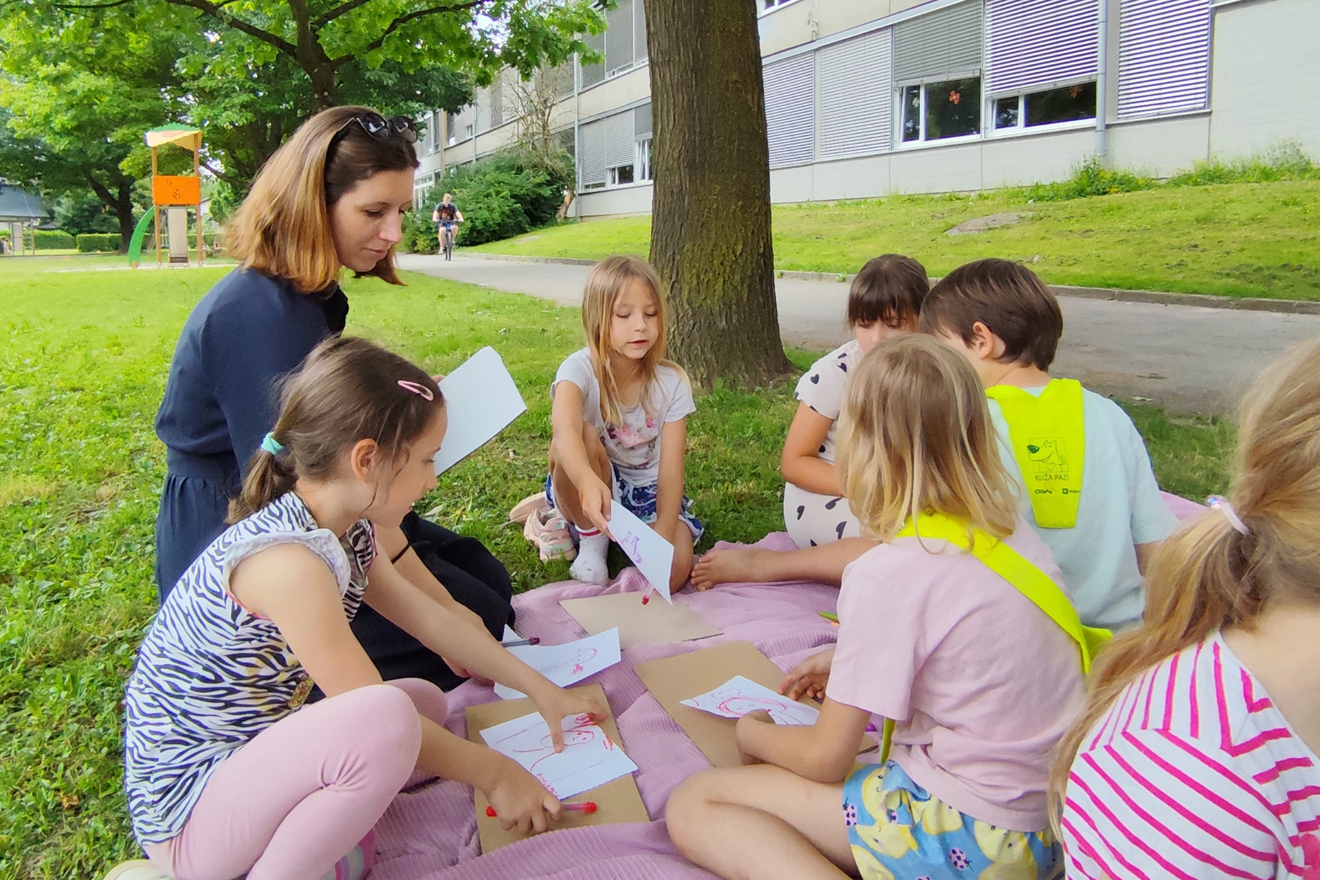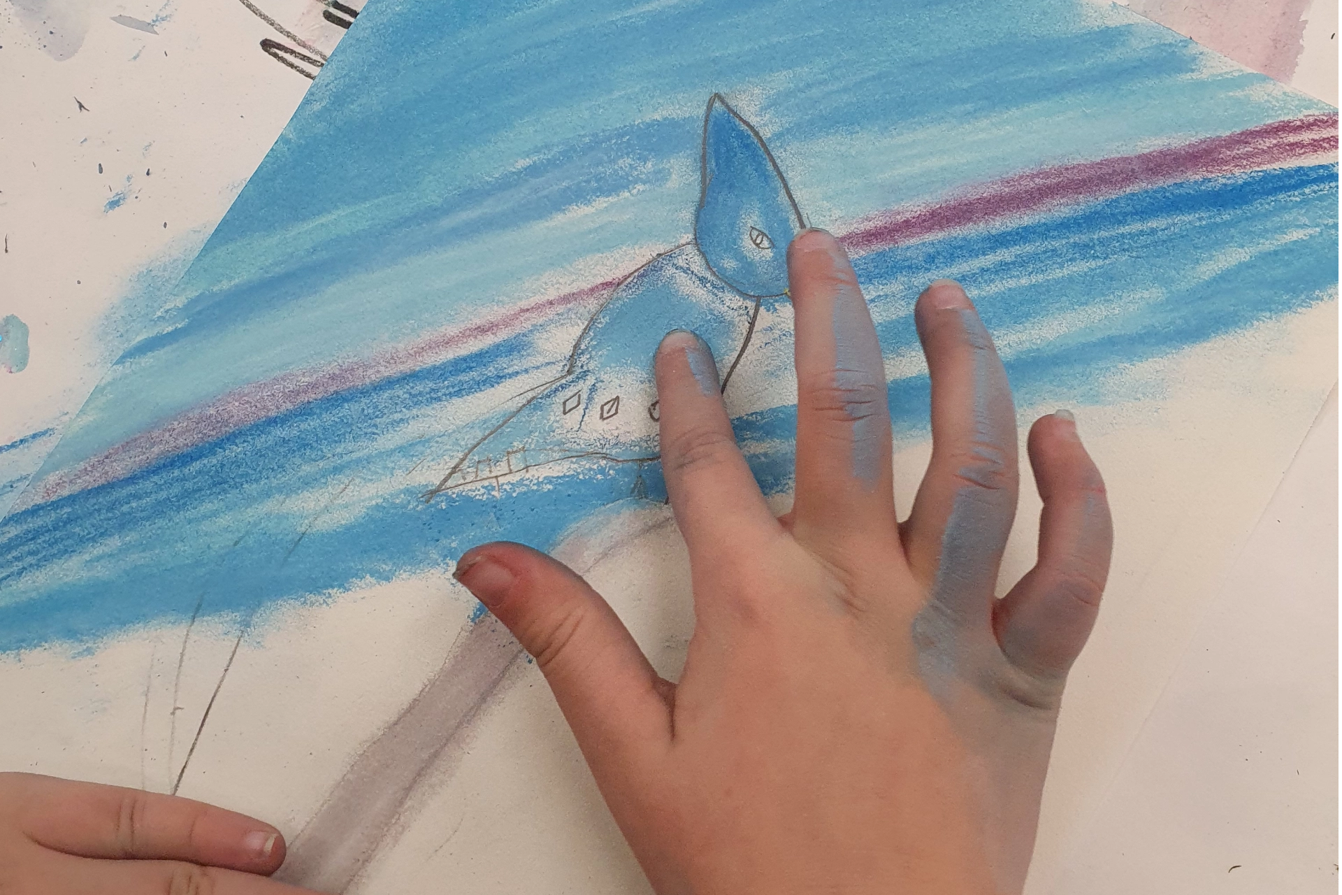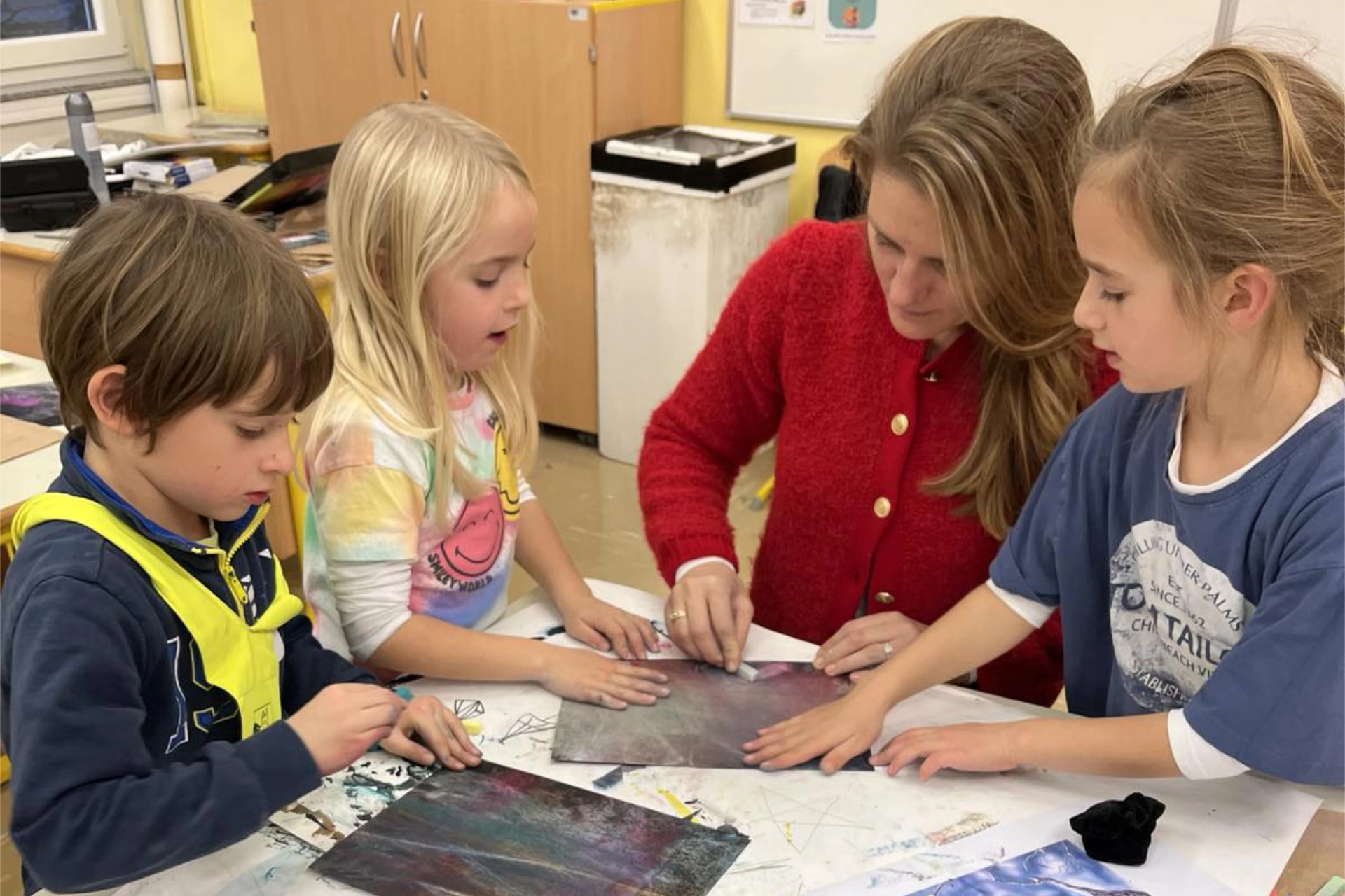Skupaj raziskujemo različne umetniške tehnike – od slikarstva, arhitekture, oblikovanja v 3D do eksperimentiranja z raznolikimi materiali. Ustvarjanje dopolnjujemo z gibanjem, glasbo in meditacijo, sproščeno se preizkusimo tudi v polivanju barv, risanju z usti, nogami, rokami, zaprtimi očmi …