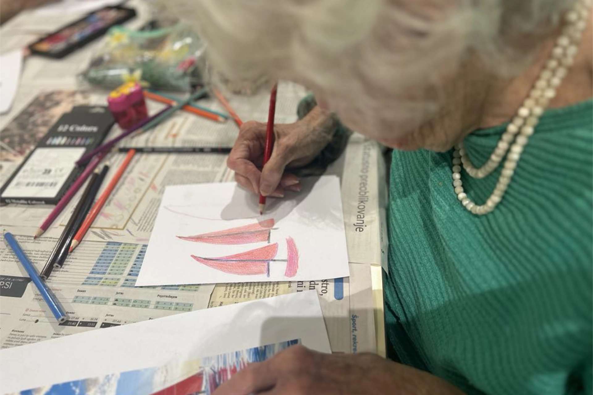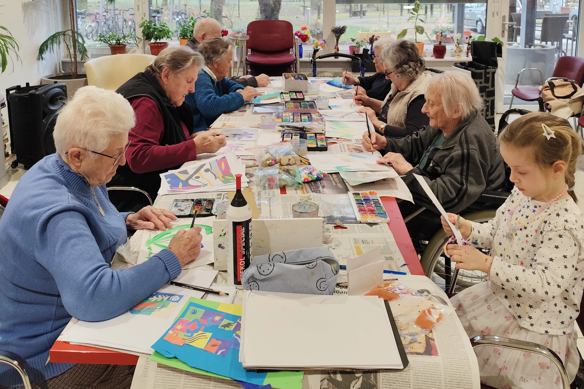Naše izrazno-likovne delavnice v domovih za starejše prinašajo priložnost za ustvarjanje, sprostitev in medsebojno povezovanje. Udeleženci skozi risanje, slikanje in oblikovanje izražajo svoja doživetja in doživljanje ter ob spremljavi glasbe krepijo motoriko, spomin in čustveno blagostanje.